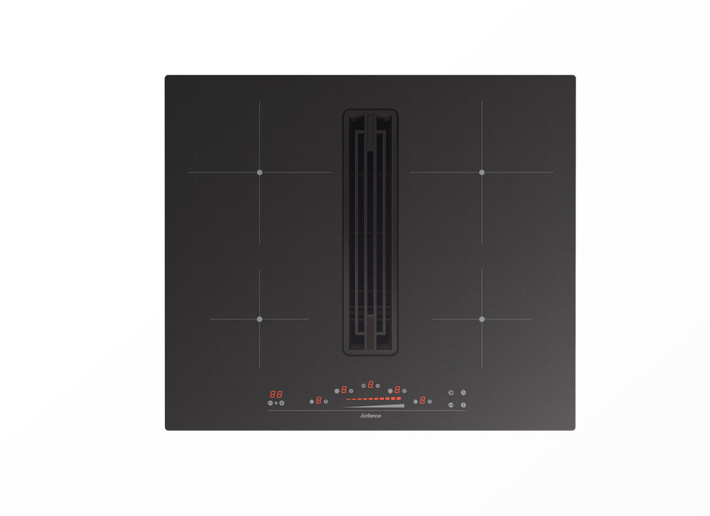 Control: Slider touch control, 4 cooking zones 9P+booster, 5 aspiration speeds (4+1 intensive)