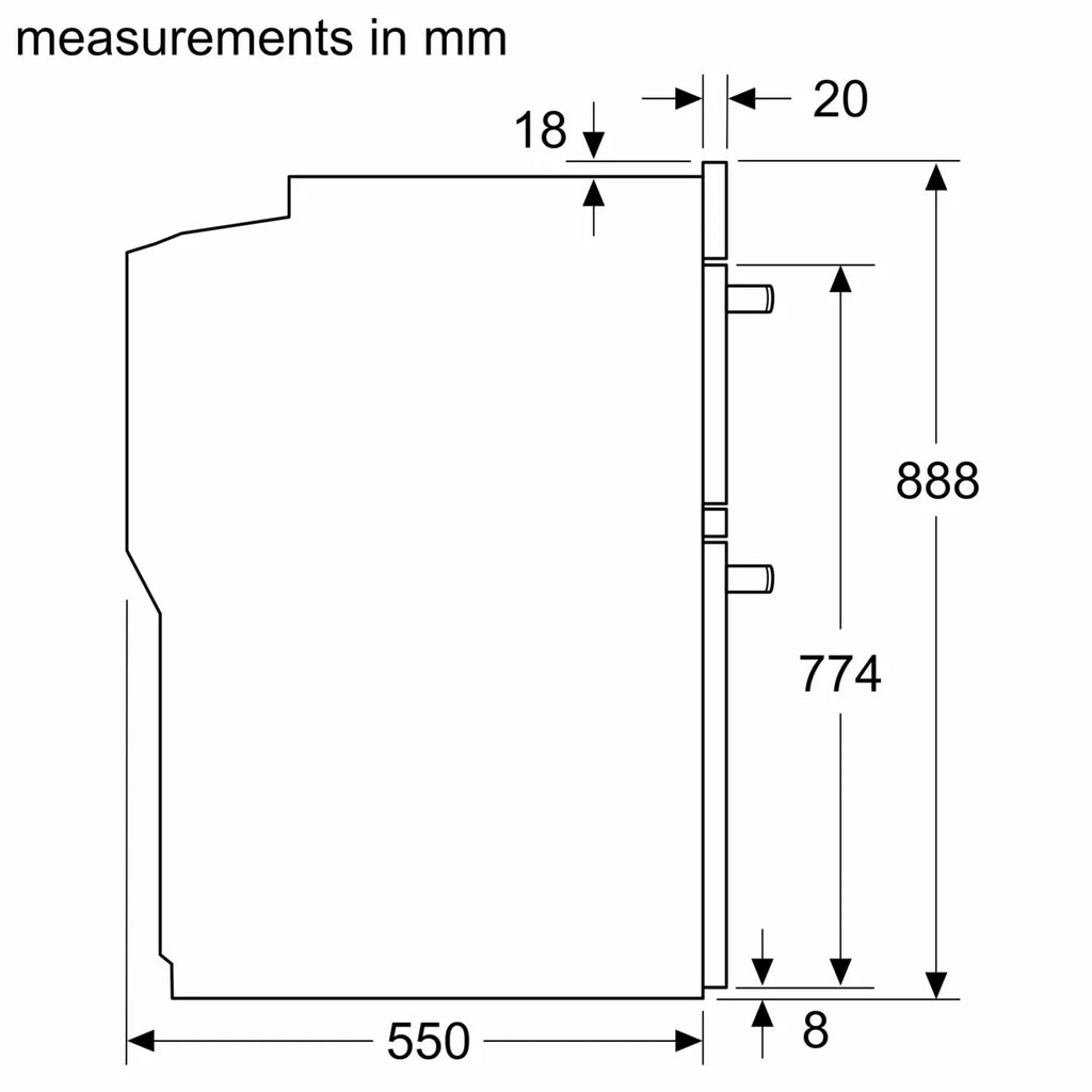 Depth for installation: 550 mm